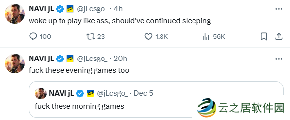 继“早上这些糟糕的比赛”、“晚上这些糟糕的比赛”之后,Natus Vincere战队选手jL在不敌Spirit之后发布了第三条赛后动态: