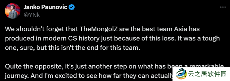 YNk:我们不应该因为这次失利而忘记The MongolZ是亚洲现代CS历史上最强的队伍。这场比赛确实很艰难,但这并不是这支队伍的终结。