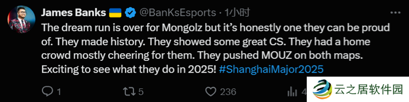 BanKs:虽然The MongolZ的梦想已经终结,但老实说他们已足以自傲。他们已经创造了历史,并且展示了一些绝佳的CS。他们有着主要为其加油助威的主场观众,而且他们在两张地图上都把MOUZ逼到了极致。很期待他们在2025年的表现。