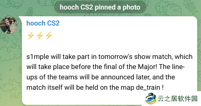 不过刚才hooch又表示s1mple将会参加明天的表演赛,而且他还分享了表演赛的地图,那就是社区预计Major后会加入竞技图池的de_Train。在这张地图上,s1mple也有很多名场面。