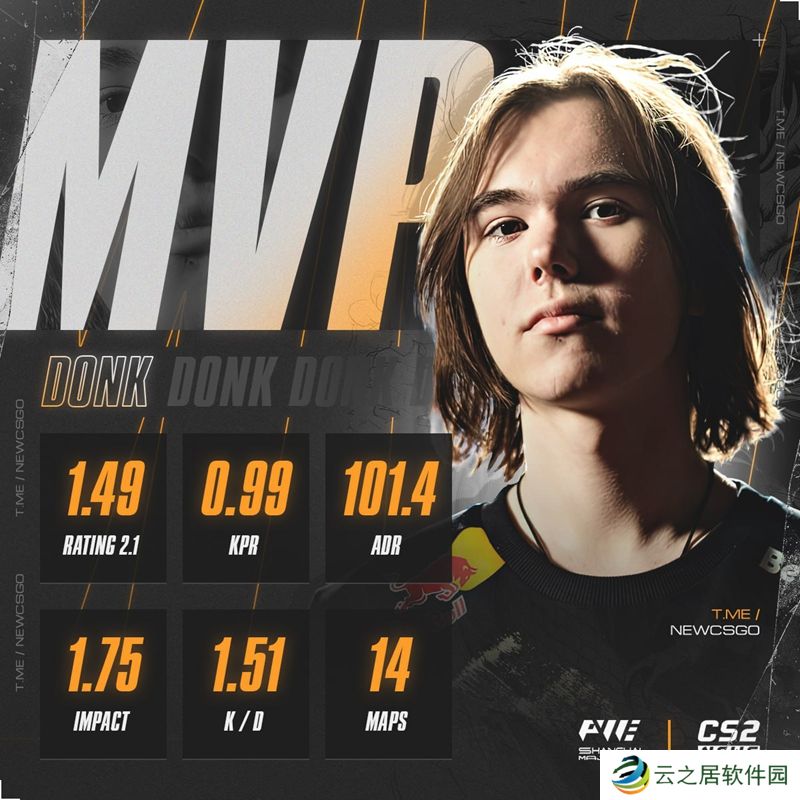在刚刚结束的上海Major决赛中,Spirit战队2-1击败FaZe战队夺冠。而donk也凭借自己恐怖1.49的赛事rating成为本届Major当之无愧的MVP。