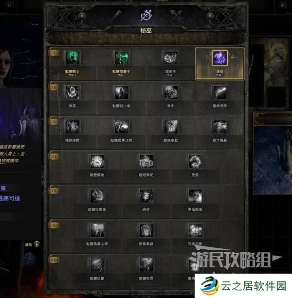 一开始游戏有六个职业,从左到右分别为:女术者、战士、游侠、女巫、佣兵、僧侣。玩到中后期每个职业各有两个职业升华。