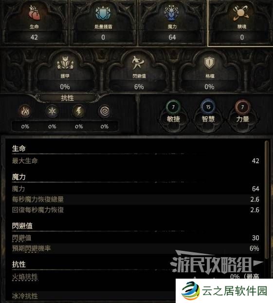 闪避值:闪避值赋予一定几率闪躲敌人打击或投射物,实际几率取决于攻击者的命中值。