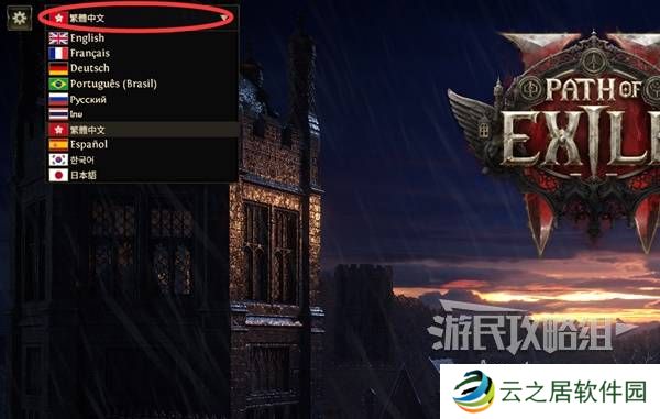 在屏幕左上角选择语言,游戏自带繁体中文。