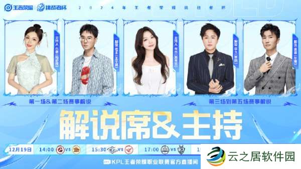 解说席&主持人:解说小鹿 (陆舒媛)、解说老王ww (王华斌)、解说李九 (李昂)、解说天云 (高天云)、解说潇洒洒 (李潮)