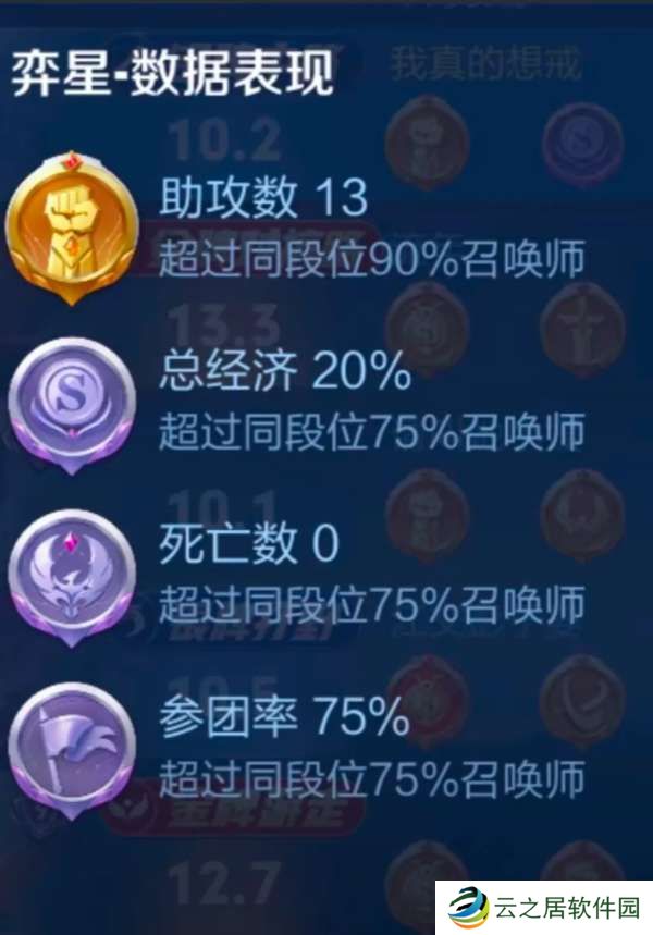 如何提高评分:在对局结束的评分机制中,会看到一个非常奇怪的情况,死亡数为0时只能超过同段位75%的召唤师。