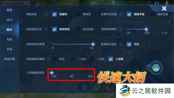 快速大招:在操作设置中,将技能瞄准灵敏度中的“三技能”瞄准体验改为灵敏,这样释放大招的时候响应速度会更快。(需要选弈星在局内才能调整)
