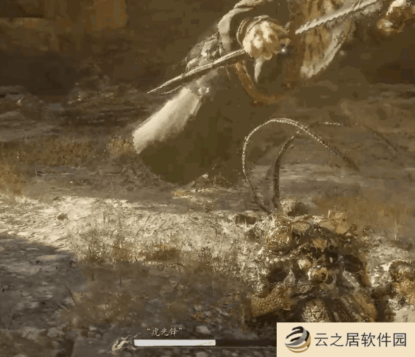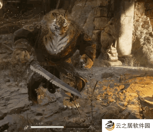 这招是一个三连击,虎先锋先是以较大前摇摆动身体挥出一刀,然后使用前爪肘击玩家,再一个大前摇跳到半空落地打出一个大范围攻击。