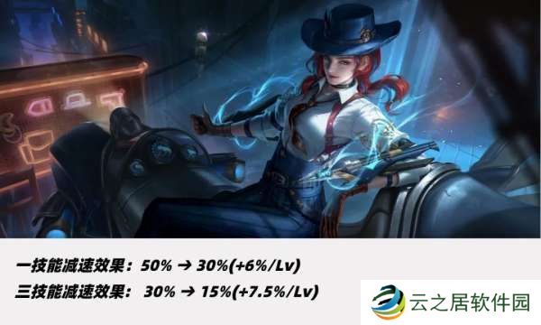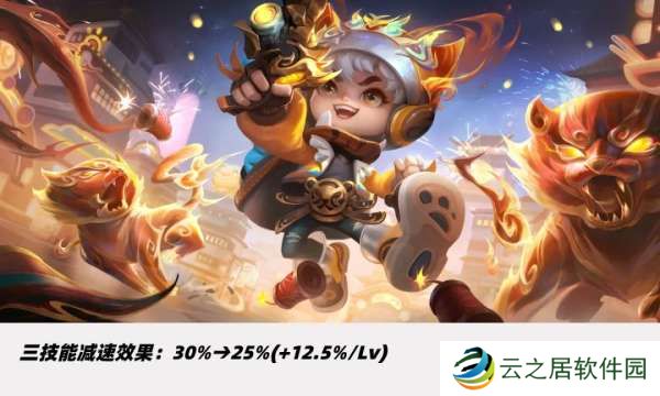 二技能减速从50%调整至15%-30%,二技能前期缩短2秒、满级不变。