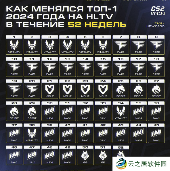 HLTV今年Top1战队变化:年初蜜蜂年底G2,NaVi登顶时间最长