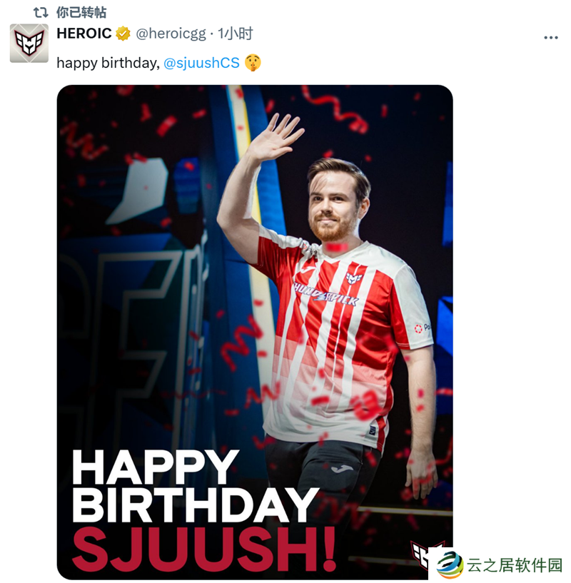 今天HEROIC俱乐部在社交平台上祝福队内选手sjuush生日快乐,sjuush出生于1999年1月3日,今天是他的26岁生日。