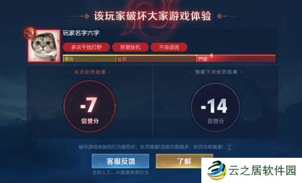 1、对无心之失而影响队友体验的玩家进行警告,从而提醒其更好地团结协作取得胜利。