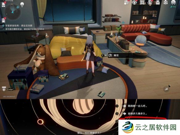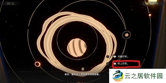 1、完成任务宇宙家装指南尾声后,回到卧室区域的床前,对话中选择“关上灯吧”。