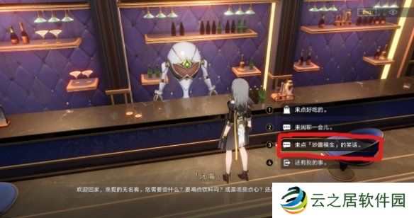 2、与吧台里面的调饮机器人「闭嘴」对话。