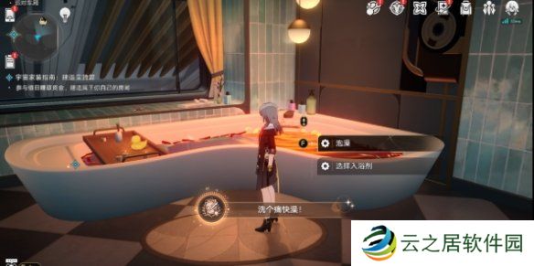 2、来到浴缸前,选择“泡澡”,即可获得成就洗个痛快澡!