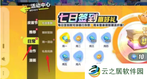 2、然后需要依次点击左侧的【日常】-【礼包兑换】功能。