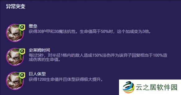 赋予30点护甲和30点魔抗。当生命值超过一半时,增益效果增至三倍。