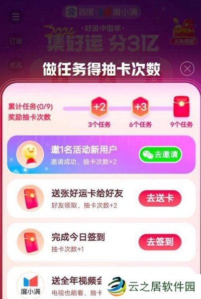 2、还能通过做任务来增加次数,例如邀请新用户以及送好运卡等等。