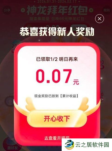 1、邀请好友参与活动即可领取现金、神龙红包以及神龙能量等奖励。