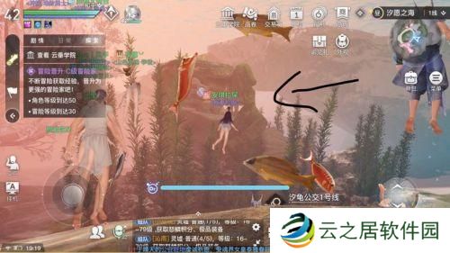 2.往下游一点,有一个蓝色的水母,贴过去可以对话,对话之后进度如下