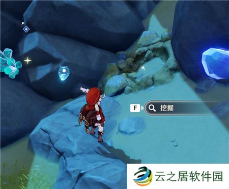 鹤尾的宝藏在孤云阁的小岛上,如图这里可以挖掘的小坑就是。需要清理三只小岩龙蜥和一个遗迹猎者,不确定不清能不能拿,反正我清了