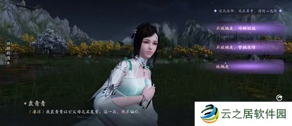 不管是少侠【不放她走,冷酷劝诫】还是【不放她走,替她求情】,这两个选项选择后,都有一个白玉京跳出来告诉少侠,袁青青是假死,然后以县主之仪下葬,再让少侠拆穿。