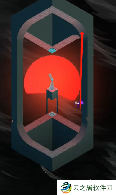 2、到达下方红**域后,继续旋转机关,让角色踩到右侧的机关上。