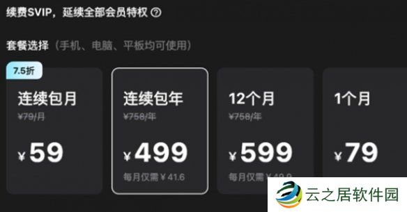 4、连续包年:499元。