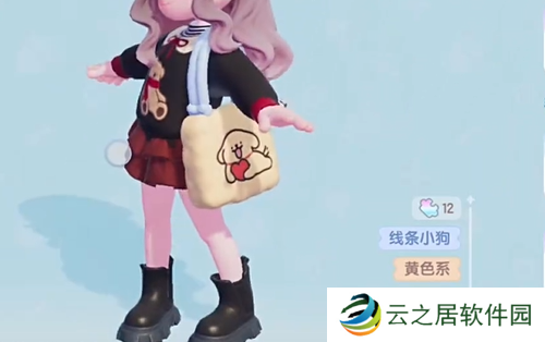 3、前往文艺街,找到小狗泡泡,触碰即可获得小金毛托特包。