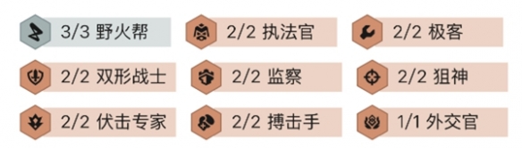 3野火帮、2执法官、2极客、2双形战士、2监察、2狙神、2伏击专家、2搏击手、1外交官